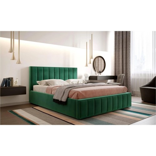Кровать производится под заказ с обивкой из экокожи или ткани различных цветов. Итоговая стоимость изделия может изменяться в зависимости от выбранного вами материала.